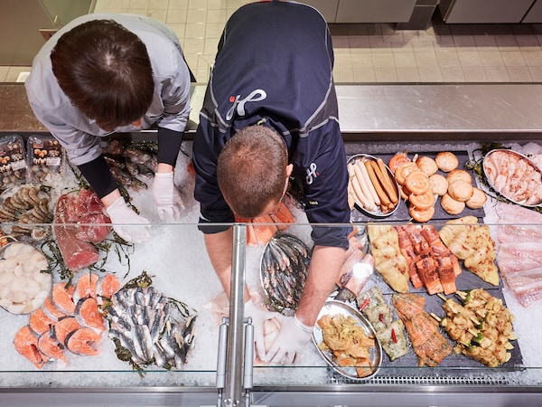 Was noch zu den Aufgaben an der Fischtheke gehört? Der Kundschaft Arbeitsschritte wie beispielsweise das Entgräten und Filetieren abnehmen und so die Zubereitung und den Verzehr von Fisch attraktiver machen. Zudem gehört es auch zum Job an der Fischtheke gezielte Empfehlungen zu Beilagen und passenden Getränken zu machen. Die kreative Feinschmecker-Ader wird auch bei der Zubereitung von markteigenen Feinkostspezialitäten und convenienten Fisch-Spießen benötigt. Wer hier punktet, macht die Fischtheke zum echten Erfolgsfaktor, zieht zusätzliche Kund:innen an und beflügelt damit den ganzen Markt.
