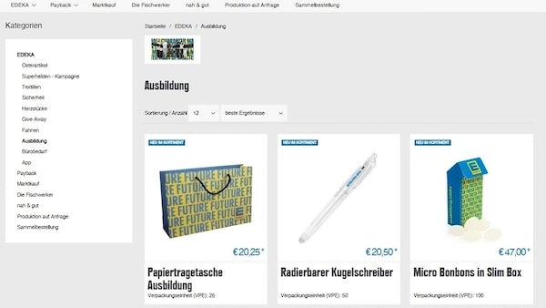 Im Ausbildungsbereich des EDEKA Werbemittelshops gibt es jetzt neue Highlights zu entdecken: Minzbonbons, Papiertragetaschen und ein radierbarer Stift stehen ab sofort zur Verfügung.