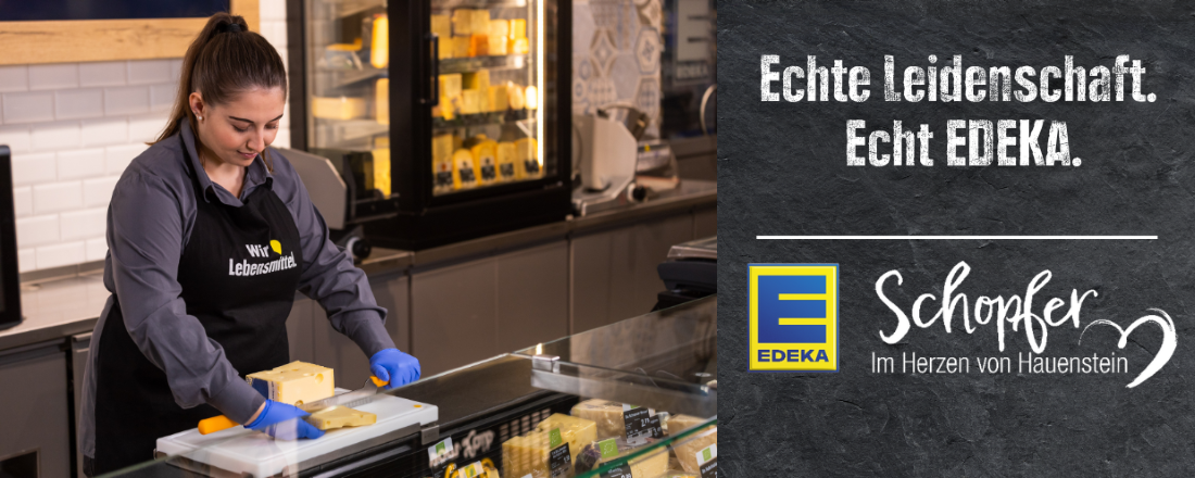EDEKA Schopfer ist ein familiengeführtes Unternehmen in Hauenstein mit einem modernen und innovativen Markt. In familiärer Atmosphäre bieten wir unseren Mitarbeitern einen krisensicheren Arbeitsplatz. Auf ca. 1500 m² Verkaufsfläche steht die Regionalität, Frische und Qualität unserer Waren an erster Stelle. Wir geben täglich unser Bestes, sodass keine Wünsche unserer Kunden offen bleiben.