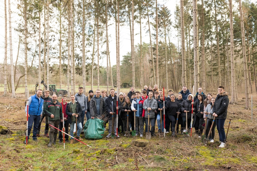 Auch in diesem Jahr geht die Pflanzaktion der EDEKA Minden-Hannover zum EDEKA Azubi-Wald weiter. Allen neu gestarteten Nachwuchskräften wird ein klimastabiler Baumsetzling gewidmet. Insgesamt sind im Jahr 2022 1.191 junge Menschen in einem der 26 Ausbildungsberufe oder dualen Studiengänge bei der EDEKA Minden-Hannover ins Berufsleben gestartet. Zusätzlich wird für jedes der 136 angemeldeten Azubi-Teams der großen U21 Talente-Challenge ein Baum gepflanzt. Das ergibt 1.327 Baumsetzlinge für den Klosterwald Mühlenbach in Petershagen-Heimsen.
