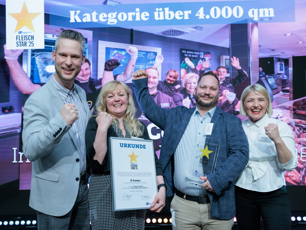Bei dem jährlichen Wettbewerb „Fleisch-Star“ zur Auslobung der besten Metzgereitheken in Deutschland, würdigte die Jury bei den Siegermärkten insbesondere die Leistungen in Wirtschaftlichkeit, Beratung und Bedienung sowie die Sortimentsgestaltung. In der Kategorie der großen Lebensmittelmärkte über 4000 qm überzeugte das E center Tiengen aus Waldshut-Tiengen und holte sich die Siegertrophäe bei der Preisverleihung auf dem Petersberg in Königswinter bei Bonn. Die Jurybewertung honorierte insbesondere das herausragende Sortiment an den Bedientheken sowie die hohe Qualität und handwerkliche Verarbeitung der Produkte durch das Metzgerei-Team.