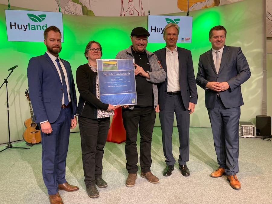 Im Rahmen der Internationalen Grünen Woche 2024 in Berlin hat die EDEKA Minden-Hannover zum achten Mal den EDEKA-Bio-Regionalpreis für die Region Sachsen-Anhalt vergeben. Im Beisein von Sven Schulze, Minister für Wirtschaft, Tourismus, Landwirtschaft und Forsten des Landes Sachsen-Anhalt, und Robert Faßhauer, Projektmanager für Ernährungswirtschaft bei der Agrarmarketinggesellschaft Sachsen-Anhalt (AMG), übergab Hans-Ulrich Schlender, Vertriebsgeschäftsführer bei der EDEKA Minden-Hannover, die Auszeichnungen an die „Huyland GmbH“ für das „Bio- Sonnenblumenöl“ und an das „Weingut Born“ für den „Bio Müller-Thurgau Gutswein trocken“.