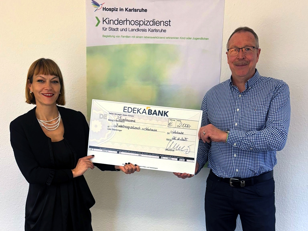 Der Kinderhospizdienst Karlsruhe erhält eine Spende über 2.000 Euro von Mitarbeitenden von EDEKA Südwest und ihren Produktionsbetrieben. Im Rahmen ihrer Initiative „Cent-Spende – EDEKA Südwest hilft“ spenden diese den Cent-Betrag ihrer monatlichen Lohnabrechnung und unterstützen damit jedes Jahr etwa 20 soziale Organisationen und Aktionen.