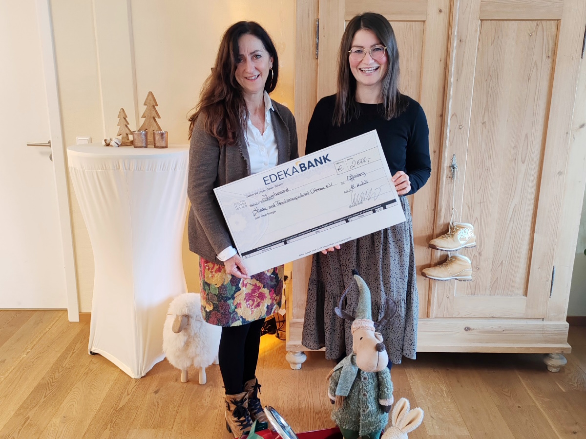 Pia Kahle, Referentin Nachhaltigkeit bei EDEKA Südwest, überreichte stellvertretend den symbolischen Spendenscheck an Helena Gareis, Leitung Kinder- und Familienhospizdienst Offenburg. „Der Kinderhospizdienst Offenburg begleitet erkrankte, Abschied nehmende und trauernde Kinder und Jugendliche und deren Familien im gesamten Ortenaukreis“, erläuterte Helena Gareis bei der symbolischen Scheckübergabe und fügte hinzu: „Es ist uns ein besonderes Anliegen, Kinder und deren Familien in Notsituationen unterstützend zur Seite zu stehen.“