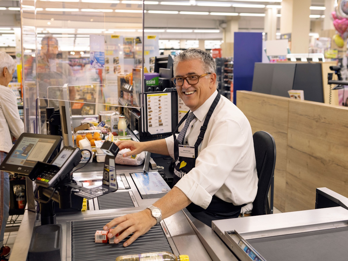 Marktleiter Bülent Bektas begrüßte den Bundestagsabgeordneten am Donnerstagmorgen im E center gemeinsam mit weiteren Vertretern von EDEKA Südwest. Nach einer kurzen Einweisung an der Kasse machte sich Michael Donth auch gleich an die Arbeit. Gut gelaunt unterhielt er sich während des Kassierens mit den wartenden Kundinnen und Kunden und erfuhr dabei auch, warum sie gerne im Dettinger E center einkaufen. Nach rund einer halben Stunde wurde der kassierte Betrag von EDEKA auf 1.000 Euro großzügig aufgerundet. Den symbolischen Spendenscheck überreichte der Abgeordnete gemeinsam mit Marktleiter Bülent Bektas an Christine Krohmer von der Diakoniestation Oberes Ermstal-Alb.