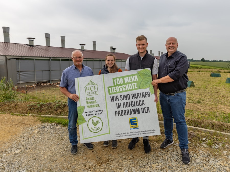 „Wir sind sehr stolz auf unsere Partnerbetriebe und freuen uns, dies nach außen sichtbar zu machen“, sagte Jürgen Mäder, Vorstand EDEKA Südwest, bei der Überreichung des Hofschilds. Katharina Gänger, Tierschutzbeauftragte EDEKA Südwest Fleisch, ergänzte: „Jeder landwirtschaftliche Betrieb, der an unserem Programm teilnimmt, verdient Anerkennung, denn Investition in mehr Tierwohl erfordert Mut, Unternehmergeist und insbesondere Überzeugung“. Alle Produkte des Programms sind mit zwei von zwei möglichen Sternen des Tierschutzlabels „Für Mehr Tierschutz“ gekennzeichnet und tragen die Stufe 4 der Kennzeichnung „Haltungsform“.