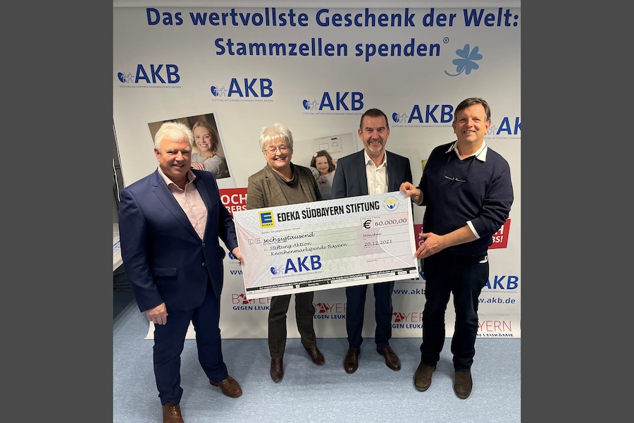 Spende für das Leben: EDEKA Südbayern Stiftung überreicht 60.000 Euro an Stiftung Aktion Knochenmarkspende Bayern (AKB)