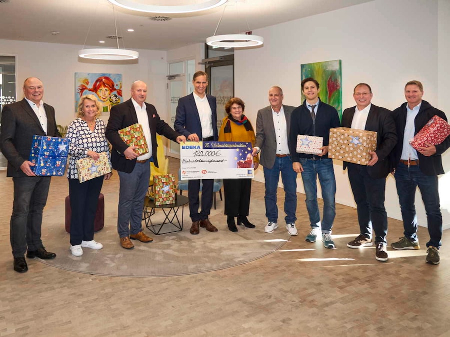 Bereits zum 25. Mal fand die Weihnachtsspendenaktion im E center Kohler in Offenburg statt. Im Jubiläumsjahr sammelten die Beteiligten die Summe von 101.000 Euro, die der Vorstand von EDEKA Südwest auf insgesamt 120.000 Euro aufrundete. „Wir freuen uns sehr, dass wir in diesem Jahr zum Erfolg dieser tollen Aktion beitragen konnten und sind dankbar für das große Engagement von Franz Bähr und seinem Team sowie für die tolle Spendenbeteiligung unserer Kundinnen und Kunden", betonte Gerd Kohler bei der Überreichung des symbolischen Spendenschecks in Freiburg