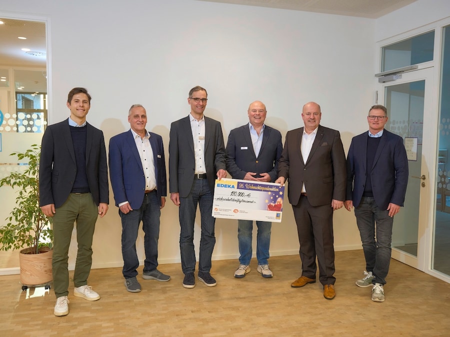 Bereits zum 26. Mal fand die Weihnachtsspendenaktion im E-Center Kohler in Offenburg zugunsten des Fördervereins für krebskranke Kinder e.V. Freiburg i. Br. statt. Die Beteiligten rund um den Initiator Franz Bähr, EDEKA Südwest und die Kaufmannsfamilie Kohler sammelten unter anderem mit dem Verkauf von Spendenkarten die Summe von 111.000 Euro, die der Vorstand von EDEKA Südwest auf insgesamt 130.000 Euro aufrundete. Den symbolischen Spendenscheck überreichte Franz Bähr gemeinsam mit Jürgen Mäder, Vorstand EDEKA Südwest, sowie den Kaufleuten Gerd und Dr. Maximilian Kohler im Beisein von Prof. Dr. Tobias Feuchtinger von der Uniklinik Freiburg an Johannes Bitsch vom Vorstand des Fördervereins für krebskranke Kinder. Wer eine Spendenkarte erworben hatte, konnte einen von mehr als 140 Preisen gewinnen. Handball-Weltmeister Martin Heuberger ermittelte die Gewinnerinnen und Gewinner per Losverfahren. Er nahm ebenfalls an der Scheck-Überreichung teil.