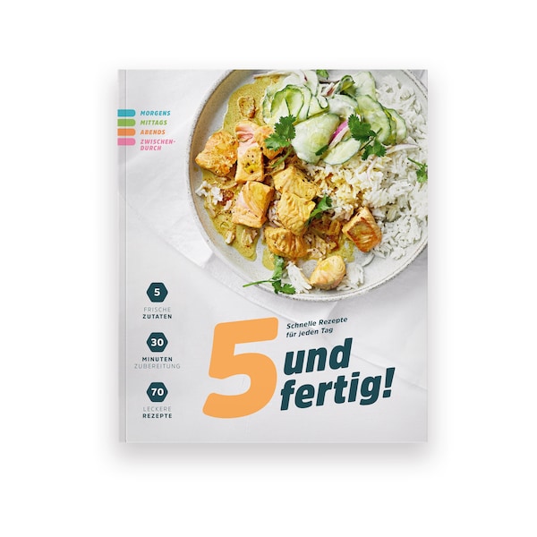 “5 und fertig!“ ist bereits das zehnte Buch in der Kochbuch-Reihe der EDEKA Media GmbH. Wie seine erfolgreichen Vorgänger „Grillen – Das Buch, „Backen – Das Buch“ und „One Pot – Das Buch“ überzeugt auch das neue Werk durch köstliche Rezepte und eine moderne Food-Fotografie.