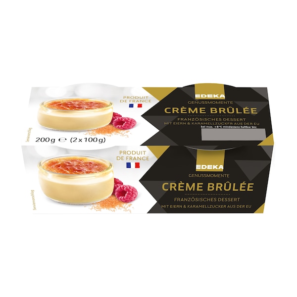 Ein festliches Dessert zu zaubern war nie einfacher als mit der EDEKA Genussmomente Crème Brûlée. Auf der traditionellen französischen Dessertcreme aus Sahne, Ei, Milch und Zucker verschmilzt der beiliegende Karamellzucker nach dem Aufstreuen ganz ohne Hitze zu einer knackigen, leckeren Kruste. Ein perfekter Abschluss für das Festtagsmenü.