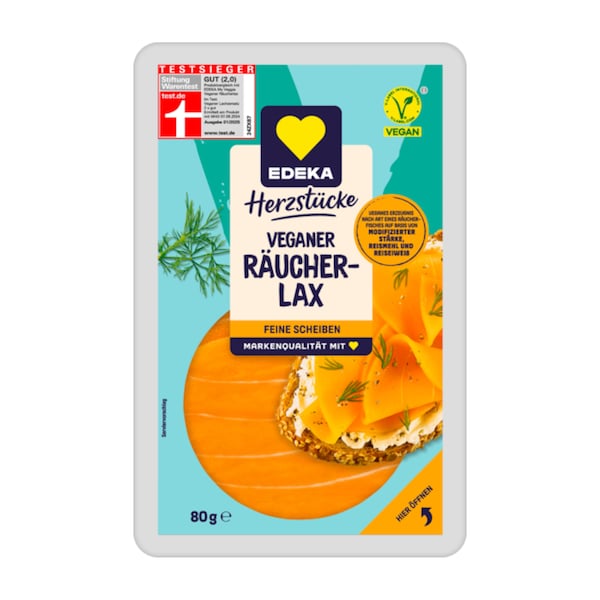 Mit den veganen Räucherlax-Scheiben von EDEKA Herzstücke ist das Sonntagsfrühstück komplett. Dank der rein pflanzlichen Alternative zum beliebten Lachsaufschnitt muss auf das „Laxbrötchen“ am Morgen jetzt also nicht mehr verzichtet werden. Auch auf einem knusprig getoasteten Bagel oder auf Knäckebrot schmeckt der vegane Räucherlax besonders gut.