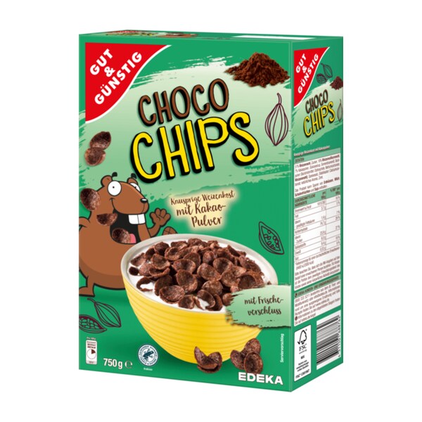 Schokoliebhaber:innen aufgepasst! Die GUT&GÜNSTIG Choco Chips vereinen knusprige Weizenflakes mit schokoladigem Kakaogeschmack und versüßen den Start in den Tag.