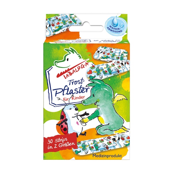 Für die tapferen Drachen unter uns: Kinder lieben Abenteuer – da kann auch mal etwas schief gehen. Gerade dann sind die Tabaluga Trostpflaster für Kinder nicht wegzudenken. Die Tabaluga Trostpflaster sind wasserabweisend und eignen sich daher besonders gut für abenteuerlustige Kinder. Mit den zwei unterschiedlichen Pflastergrößen ist jede kleine Wunde gut versorgt – und dank der lustigen Tabaluga-Motive ist der Schmerz hoffentlich auch ganz schnell vergessen.