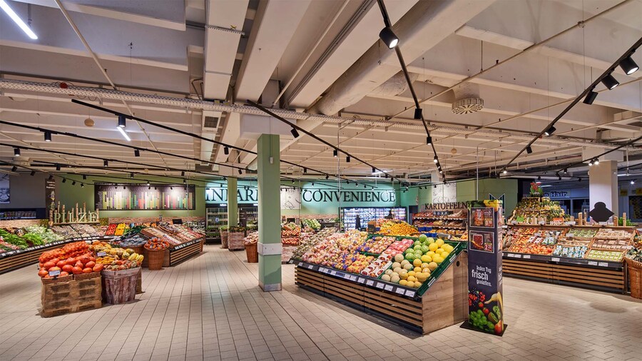 Stimmt das Drehbuch, steht der erfolgreichen Umstellung nichts im Weg. Seit Sommer 2021 koordiniert eine bereichsübergreifende Arbeitsgruppe die Projektsteuerung zur Umwandlung der ehemaligen real-Märkte. Einer detaillierten Bestandsaufnahme folgen akribische Planungen. Mit rund zehn bis zwölf Wochen Vorlauf starten die standortspezifischen Umbauarbeiten. Auf diese Weise haben wir vergangenes Jahr bereits sieben der SB-Warenhäuser effizient in Marktkauf-Häuser und E center verwandelt. Vertrieb und Logistik, Einkauf und Marketing, Personal und IT, Revision und Immobilien – sämtliche unserer Geschäftsbereiche arbeiten auch bei diesem Projekt fokussiert zusammen. Mit einem Ziel: den großflächigen Lebensmittelmärkten und ihren Teams unter dem Dach der EDEKA Südwest tragfähige wirtschaftliche Perspektiven zu eröffnen. Zugleich bieten wir den Kunden vor Ort zeitgemäße, frischeorientierte und regional ausgerichtete Einkaufserlebnisse.