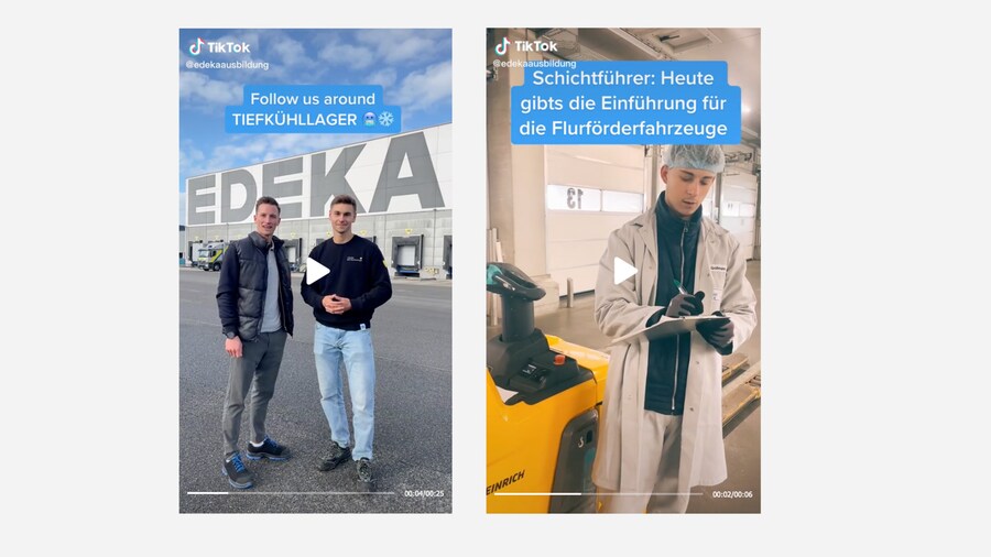 Zur Mitarbeitergewinnung für unsere Logistik-Standorte in Balingen, Ellhofen, Heddesheim, Offenburg, Rastatt und St. Ingbert wurde im zurückliegenden Jahr eine neuartige Recruiting-Kampagne via Social Media umgesetzt. Auf Kanälen wie beispielsweise Instagram, TikTok, YouTube und Facebook konnten interessierte Bewerberinnen und Bewerber ohne große Hürden mit uns in Kontakt treten. Unsere Strategie dahinter: auf uns als offene und moderne Arbeitgebermarke aufmerksam zu machen und in kurzer Zeit möglichst viele Kandidatinnen und Kandidaten zu motivieren, sich bei uns zu bewerben. Flankiert wurde diese Initiative von dazu passendem Content, der die Benefits bei EDEKA Südwest in den Fokus rückte. Angesprochen wurden auf diese Weise insbesondere Talente und Fachkräfte, die eine neue berufliche Herausforderung suchen, jedoch nicht unbedingt bereit sind, sich aktiv zu bewerben.