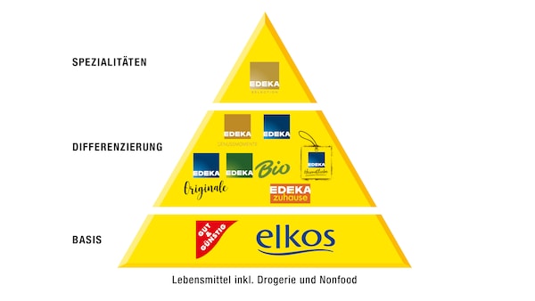 Das Basissortiment garantiert mindestens die Qualität der führenden Marke im Massenmarkt. Das Differenzierungs-Sortiment bietet einen objektiven Zusatznutzen gegenüber den Basismarken oder gegenüber dem entsprechenden Wettbewerbsprodukt. Ganz oben in der Eigenmarken-Pyramide finden sich ausgewählte, exklusive Spezialitäten.