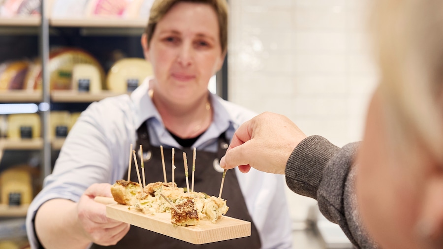 Regionale Produkte komplementieren das Sortiment. Etwa Butterschinken aus Unna – den holt der Chef höchstpersönlich vom Betrieb ab. Die Eigenproduktion wird seit der Eröffnung kontinuierlich ausgebaut. Verfeinerte Bratwurst und Roast Beef zählen beispielsweise zu den hausgemachten Spezialitäten in der Fleisch- und Wursttheke. Ein Dry-Aged-Schrank leistet ebenfall seinen Beitrag zum veredelten Sortiment. In Spitztüten bietet das Thekenteam zudem "Salami to go" an – eine appetitliche Darreichung mit Impulsstärke.