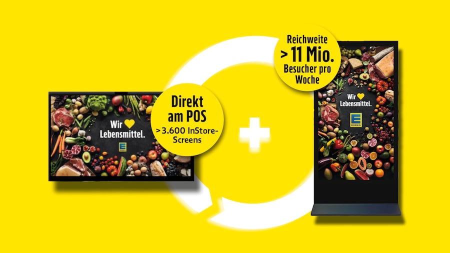 Profitieren Sie von einer flächendeckenden, digitalen Präsenz in allen EDEKA Regionen. Mit über 3.600 InStore Screens erreichen Sie wöchentlich Millionen Kund:innen – emotional, effizient und messbar erfolgreich.