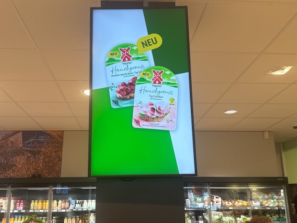 Zum Launch der veganen Produktlinie „Hauchgenuss“ setzte Rügenwalder Mühle gemeinsam mit der EDEKA-Zentrale auf Instore Retail Media – direkt am POS, wo Kaufentscheidungen entstehen. Die Bewegtbildkampagne lief deutschlandweit auf digitalen In-Store Screens in 131 EDEKA-Märkten.