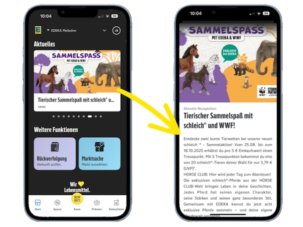 Mit zahlreichen Millionen aktiven Nutzer:innen pro Monat ist die EDEKA App ein direkter Kanal zu Ihrer Zielgruppe. Nutzen Sie App-Teaser, Gewinnspiele, Rezeptplatzierungen oder exklusive Coupons, um Ihre Marke sichtbar zu machen und gezielt zu aktivieren.