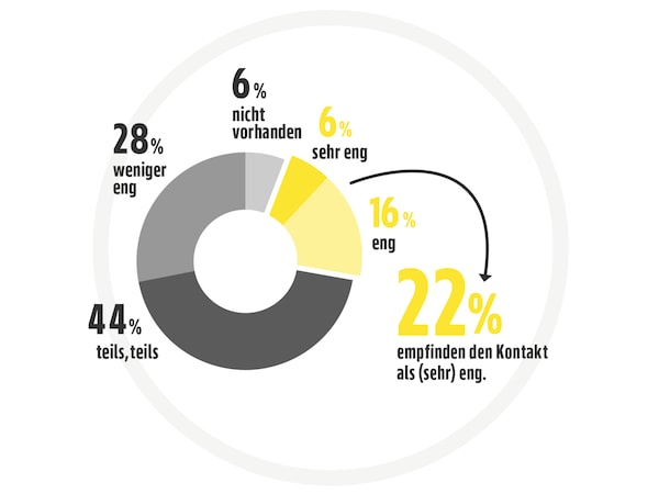Insgesamt haben 22 % der Befragten einen (sehr) engen Austausch mit der Nachbarschaft.